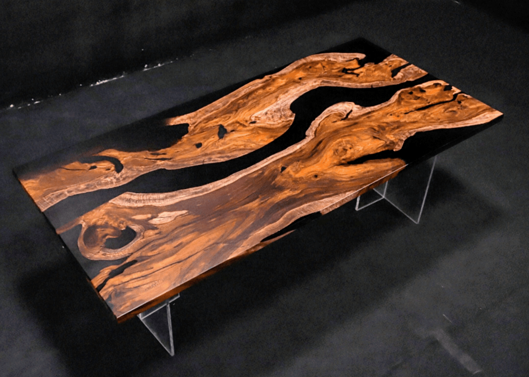 A table that fuses the warmth of natural wood with the purity of transparent resin, creating a crystalline river effect that enhances the organic shapes of the wood. Its modern and elegant design brings sophistication to any space.